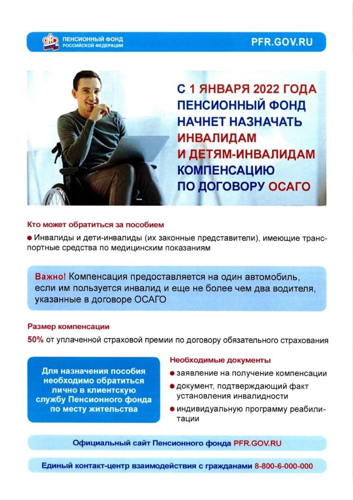 Компенсация инвалидам страховой премии по договору обязательного страхования гражданской ответственности владельцев транспортных средств.