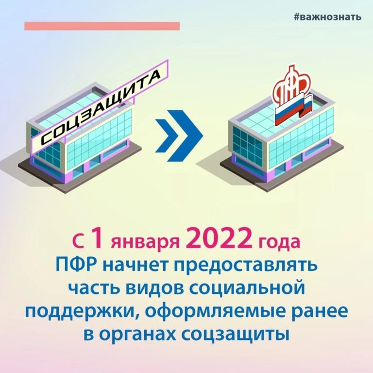 1 января 2022 года Пенсионному фонду РФ переданы полномочия по предоставлению некоторых мер социальной поддержки отдельным категориям граждан.